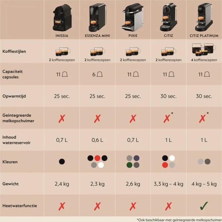 | Verpakkingsinhoud | Nespresso machine en handleiding |