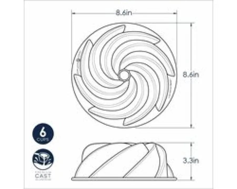 De 6-cup Heritage Bundt Pan van Nordic Ware is ideaal als je een iets kleinere tulband wilt bakken dan de standaard 10-cup vorm. Met een inhoud van 1,4 liter is deze bakvorm perfect voor kleinere groepen, zonder in te leveren op de prachtige uitstraling. Het is de perfecte balans tussen formaat en stijl, waardoor je met gemak een indrukwekkende cake op tafel zet.