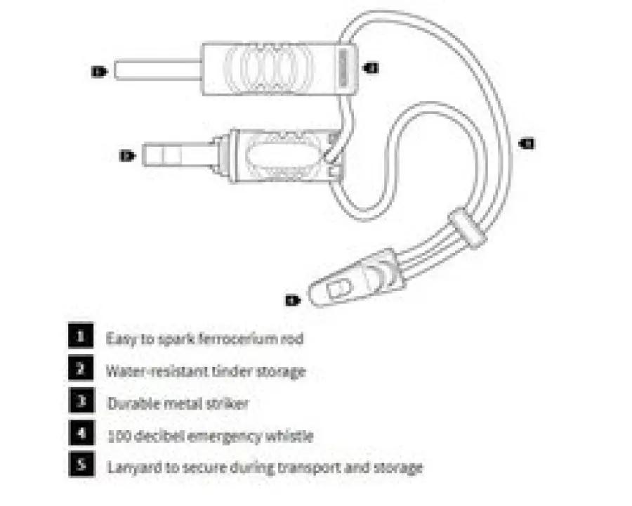 De Gerber Fire Starter is getest op meer dan 8000 slagen, wat garant staat voor een lange levensduur en betrouwbare vonken. Bovendien is er een noodfluitje bevestigd aan het koord, zodat je in noodsituaties snel hulp kunt inroepen. Het koord houdt alle onderdelen netjes bij elkaar, zodat je niets kwijtraakt.