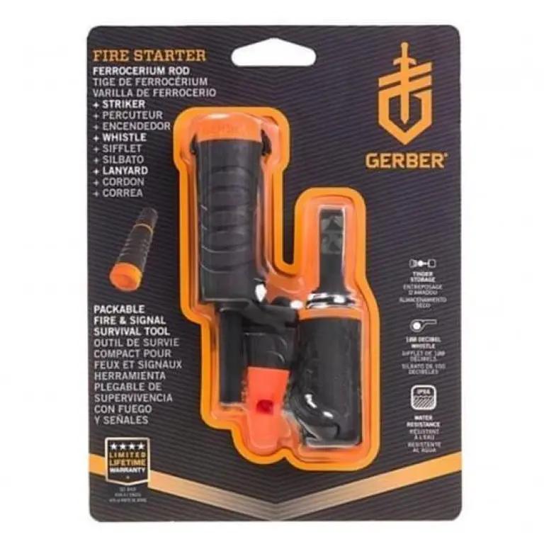 | Verpakkingsinhoud | Gerber Fire Starter met noodfluitje en lanyard |