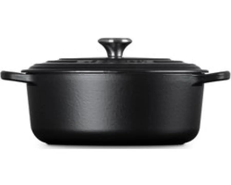 Met de Le Creuset Braadpan Ovaal Signature in mat zwart haal je een stijlvolle en functionele pan in huis. Het strakke design en de zwarte kleur maken deze pan een opvallend stuk in iedere keuken. De pan heeft een diameter van 29 centimeter en een inhoud van 4,7 liter, wat hem geschikt maakt voor het bereiden van maaltijden voor 5 tot 6 personen.