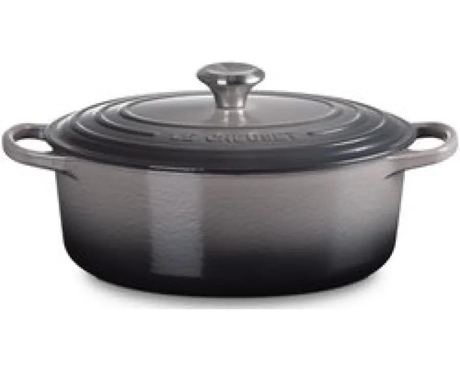 Met de Le Creuset Braadpan Ovaal Signature in de kleur Flint haal je niet zomaar een pan in huis, maar een echte eyecatcher. Deze braadpan heeft een diameter van 29 centimeter en een royale inhoud van 4.7 liter. Daarmee is hij perfect geschikt voor het bereiden van maaltijden voor 5 tot 6 personen. Of je nu een groot gezin hebt of graag kookt voor vrienden, met deze pan zit je altijd goed.