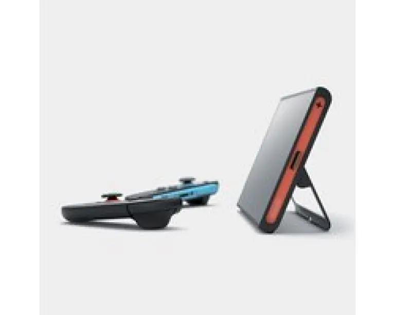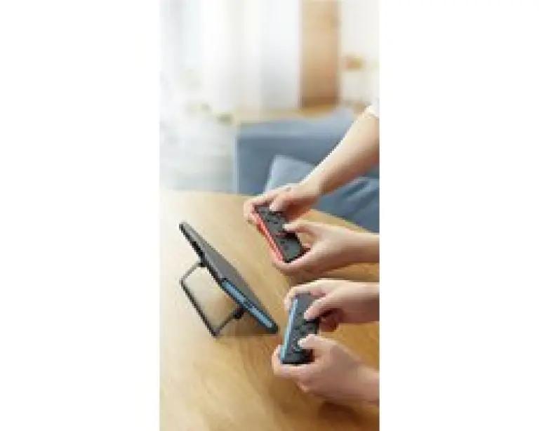 De hoek van de stabiele standaard aan de achterkant van het Nintendo Switch 2-systeem kan vrij worden versteld, waardoor spelers met gemak een prettige kijkhoek kunnen vinden. Terwijl de Nintendo Switch alleen een USB-C-poort aan de onderkant van het systeem heeft, bevatde Nintendo Switch 2 ook een poort aan de bovenkant, waar spelers de bijgeleverde voeding op kunnen aansluiten om het systeem op te laden in de tafelstijl. Het is ook mogelijk om een compatibele USB-C-camera aan te sluiten, zoals de Nintendo Switch 2-camera, voor videochat tijdens GameChat.