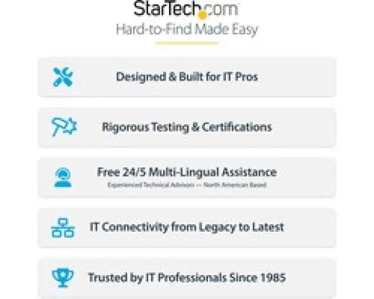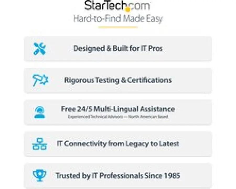 StarTech is dΓ© specialist in kabels, adapters en dockingstations, ontworpen om al je apparaten naadloos te verbinden. Met een uitgebreid assortiment aan technische oplossingen biedt StarTech producten die voldoen aan de hoogste standaarden op het gebied van betrouwbaarheid en compatibiliteit. Of je nu een professionele werkplek inricht of thuis je apparaten wilt optimaliseren, StarTech heeft de perfecte oplossing.