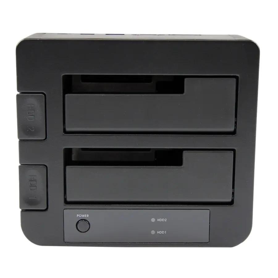 Met het StarTech.com SDOCK2U33EB docking station kun je moeiteloos twee 2,5 of 3,5 inch SATA SSD's of harde schijven aansluiten. Dankzij de snelle USB 3.2 Gen 1 interface (ook bekend als USB 3.0) en eSATA-ondersteuning haal je overdrachtssnelheden tot 6 Gbps. Dit betekent dat je grote bestanden razendsnel kunt kopiëren, back-uppen of delen zonder frustratie over trage verbindingen.