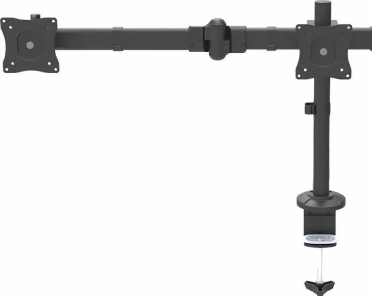De monitorarm kan stevig aan je bureau worden bevestigd met een bureauklem of doorvoertule. Hij is compatibel met VESA-montagestandaarden 75 x 75 mm en 100 x 100 mm, waardoor hij geschikt is voor vrijwel alle gangbare monitoren. De zwarte kleur zorgt voor een strakke en professionele uitstraling op je werkplek.