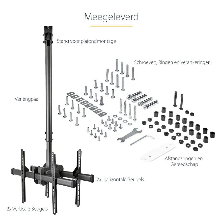 Of je nu een kantoor, wachtruimte of thuisbioscoop inricht, deze beugel lost de uitdaging op van het netjes en flexibel ophangen van twee grote schermen. Geen gedoe meer met losse standaards of onhandige muren. Met de StarTech FPCEILBTB geniet je van een strakke, professionele uitstraling en maximale bewegingsvrijheid.
