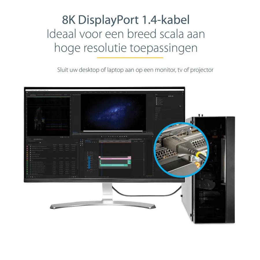 Deze kabel ondersteunt een maximale resolutie van 7680 x 4320 pixels, oftewel 8K, bij 60Hz met HDR10. Ook Ultra HD 4K beelden kunnen tot wel 120Hz worden weergegeven, wat zorgt voor vloeiende en scherpe beelden, ideaal voor gaming, films en professioneel gebruik. HDR-ondersteuning zorgt voor levendige kleuren en een hoog contrast, waardoor elk detail zichtbaar wordt.