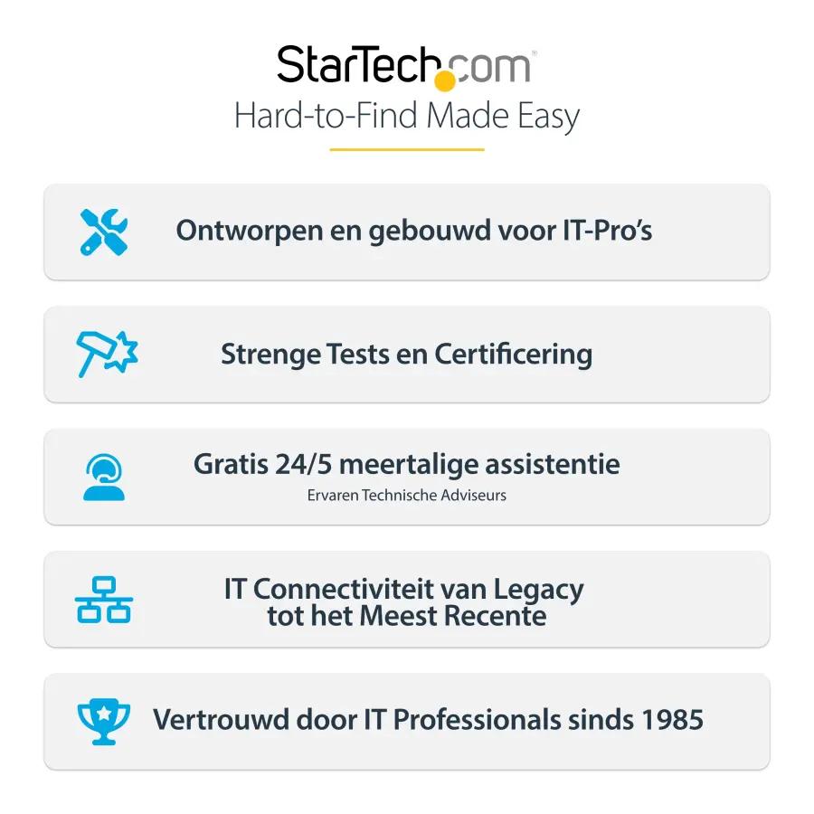 StarTech is dé specialist in kabels, adapters en dockingstations, ontworpen om al je apparaten naadloos te verbinden. Met een uitgebreid assortiment aan technische oplossingen biedt StarTech producten die voldoen aan de hoogste standaarden op het gebied van betrouwbaarheid en compatibiliteit. Of je nu een professionele werkplek inricht of thuis je apparaten wilt optimaliseren, StarTech heeft de perfecte oplossing.