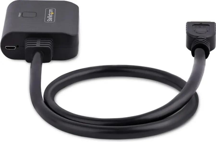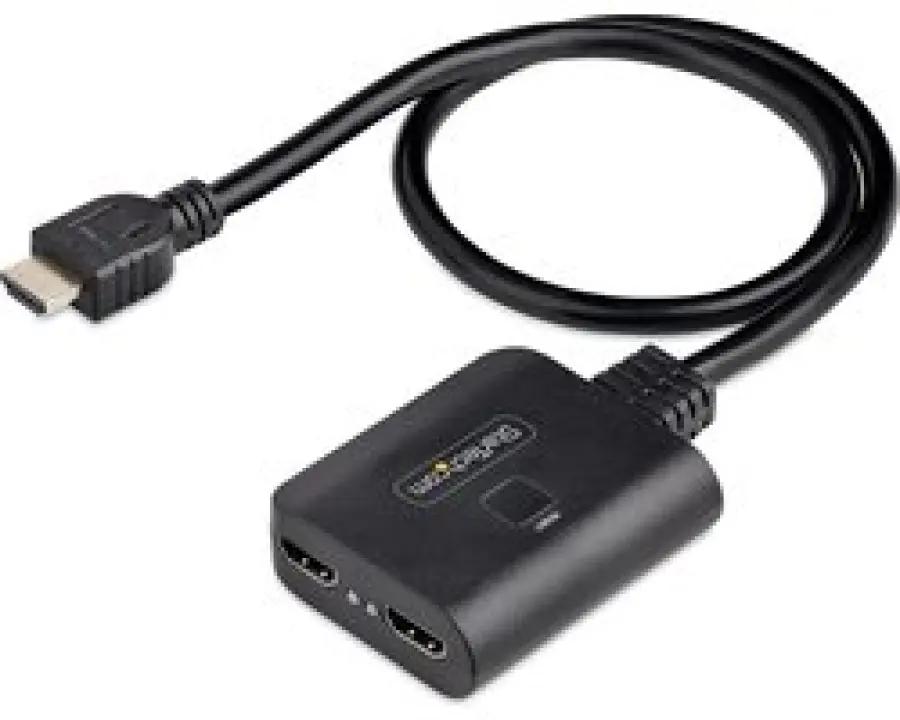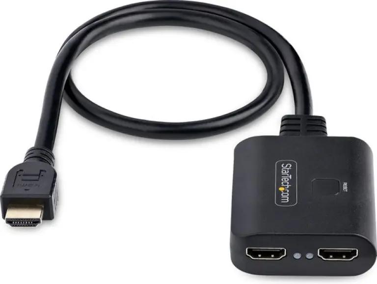 De splitter wordt geleverd met een ingebouwde HDMI kabel van 50 cm, waardoor je meteen aan de slag kunt zonder extra kabels te hoeven kopen. Dankzij het compacte en zwarte ontwerp past hij moeiteloos in elke setup, of je hem nu gebruikt voor je TV of PC.