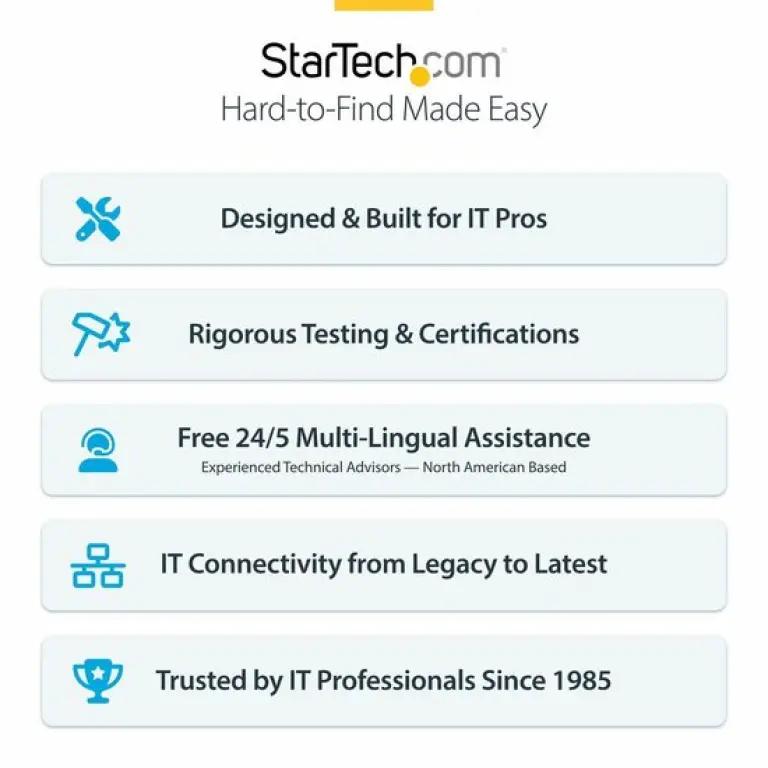 StarTech is dé specialist in kabels, adapters en dockingstations, ontworpen om al je apparaten naadloos te verbinden. Met een uitgebreid assortiment aan technische oplossingen biedt StarTech producten die voldoen aan de hoogste standaarden op het gebied van betrouwbaarheid en compatibiliteit. Of je nu een professionele werkplek inricht of thuis je apparaten wilt optimaliseren, StarTech heeft de perfecte oplossing.