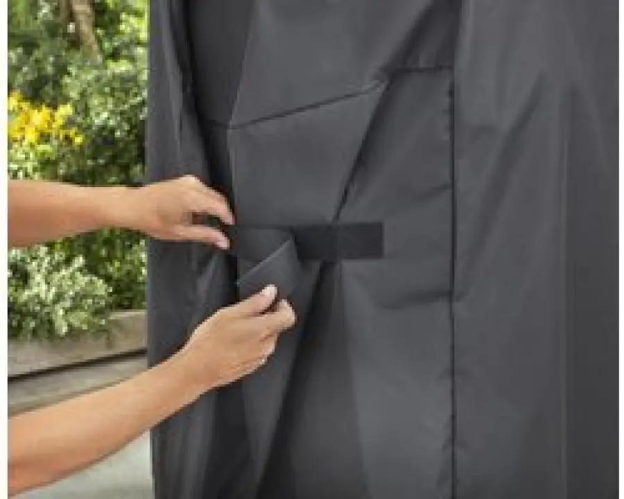 De hoes is gemaakt van stevig kunststof, wat zorgt voor een betrouwbare bescherming. Met een lengte van 75 cm, hoogte van 40 cm en breedte van 18,8 cm past deze hoes perfect om diverse soorten barbecues. Dankzij het materiaal is hij gemakkelijk schoon te maken en te onderhouden.