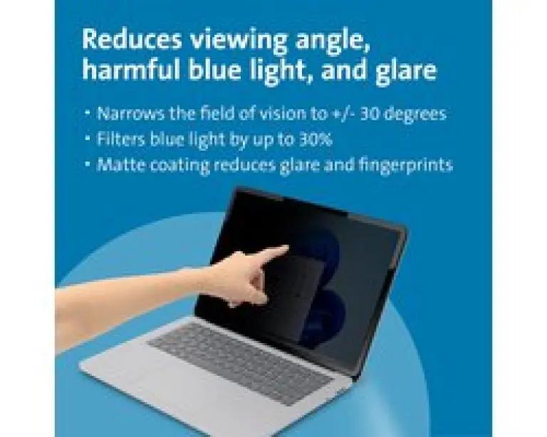 Het scherm filtert het zicht tot een kijkhoek van ongeveer ± 30°, waardoor mensen naast jou of achter je veel minder kunnen meekijken. Bovendien vermindert het schadelijk blauw licht en weerkaatsing, wat zorgt voor een comfortabelere en gezondere kijkervaring tijdens lange werkdagen. Met dit privacyfilter werk je dus niet alleen veiliger, maar ook prettiger.