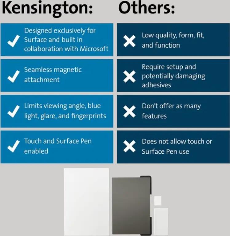 Met de overgang naar hybride werken is je werkplek niet meer gebonden aan één locatie. Dit verhoogt de kans op visuele hacking, waarbij onbevoegden meekijken op je scherm. Het Kensington MagPro Elite Magnetic Privacy Screen Filter biedt de perfecte oplossing voor eigenaren van de Surface Laptop Studio die hun scherm willen beschermen tegen nieuwsgierige blikken.