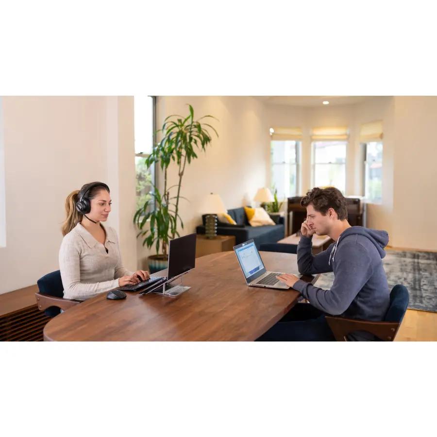 De Kensington H3000 Bluetooth Headset is ontworpen voor langdurig draagcomfort. Dankzij de oorkussens van traagschuim met verkoelende gel en ademende warmtegeleidende stof zit hij de hele dag heerlijk. De verstelbare hoofdband van kunstleer en de draaibare oorkussens zorgen voor een stevige en persoonlijke pasvorm. Ook is de microfoon draaibaar tot 270° en plaatsbaar aan de linker- of rechterkant, zodat je altijd comfortabel kunt bellen of gamen.