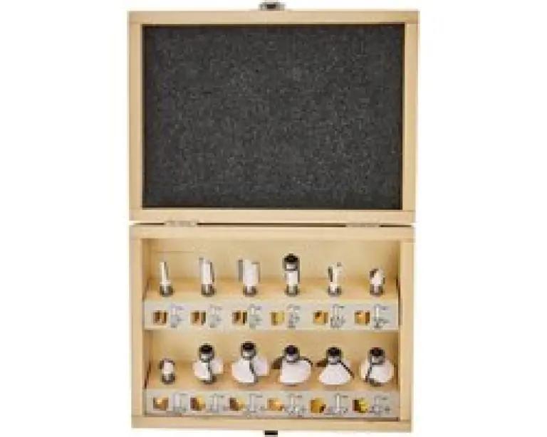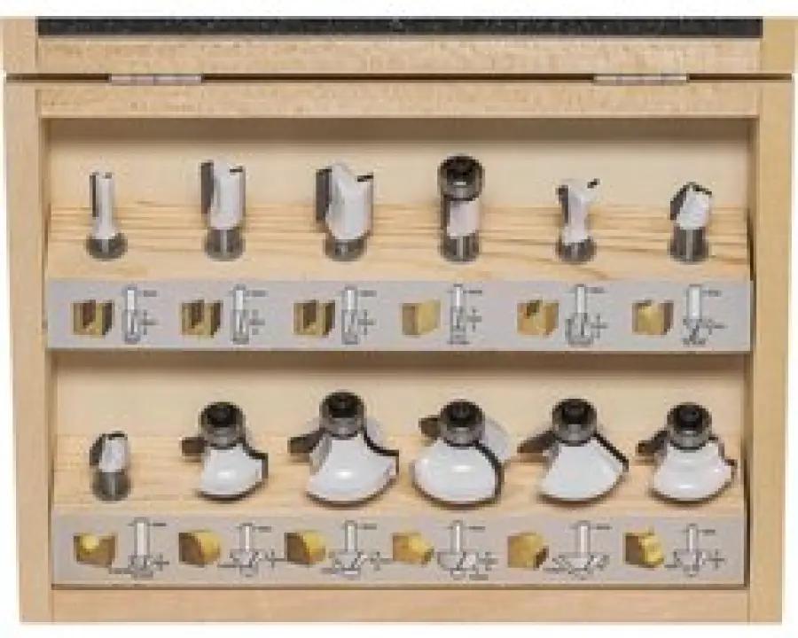 In deze set vind je 3 groeffrezen, een kopieerfrees, een zwaluwstaartfrees, een V-groeffrees, een holprofielfrees, 2 kantenfrezen met kogellager, een holprofielfrees met kogellager, een afkantfrees en een lijstprofielfrees. Deze diversiteit maakt het eenvoudig om nauwkeurige en professionele resultaten te behalen bij het maken van groeven, profielen, lijsten en meer.