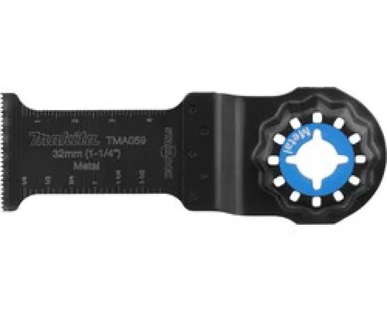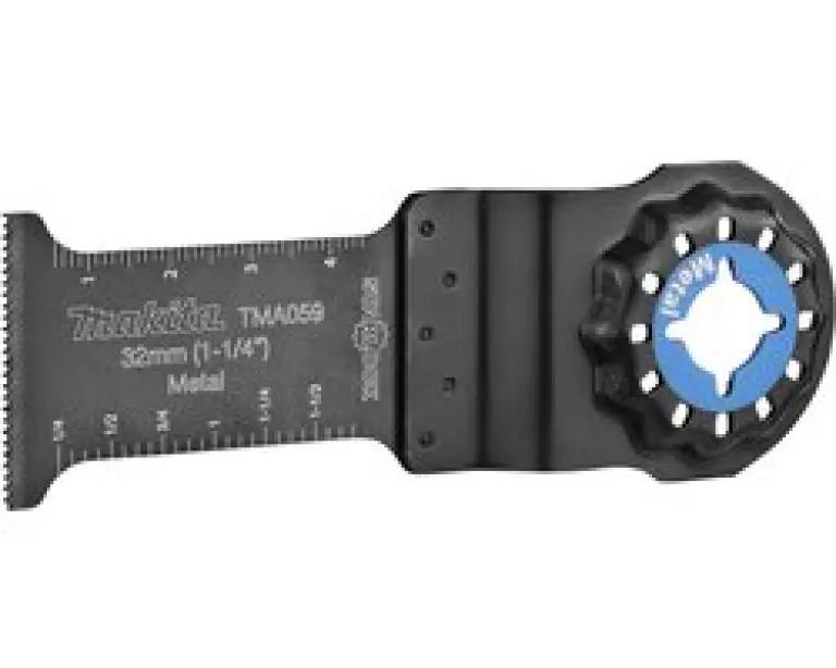 Het Makita TMA059 invalzaagblad van 32 mm is een bi-metalen zaagblad dat speciaal ontworpen is voor het zagen in metaal. Dit zaagblad is uitermate geschikt voor dunwandige aluminium profielen, non-ferro metalen profielen, plaatstaal tot 1 mm dikte, en kan zelfs ongeharde nagels en schroeven moeiteloos doorzagen.