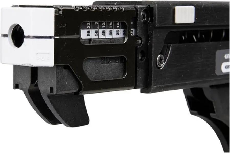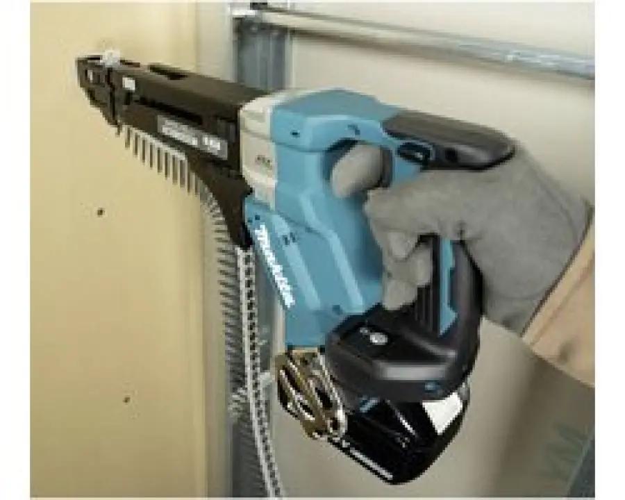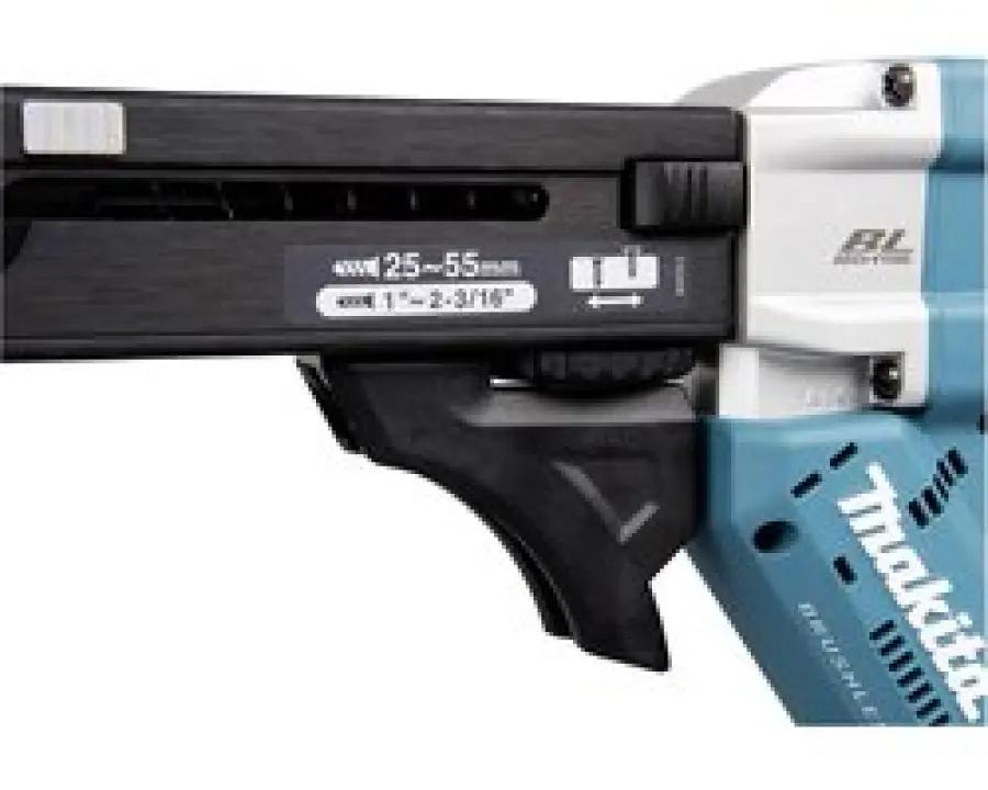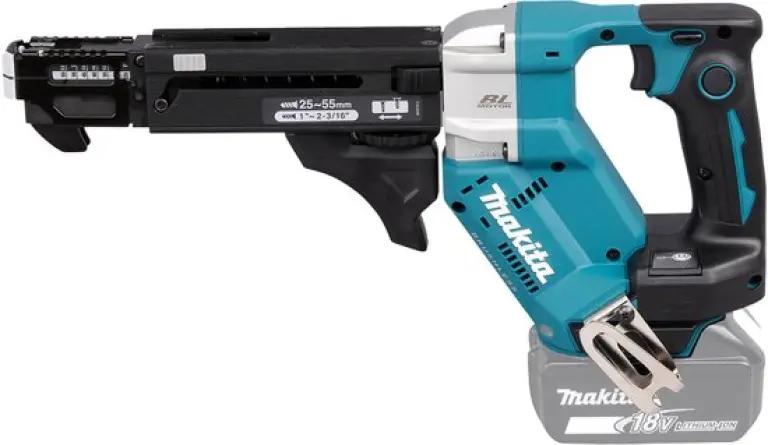 De nieuwe generatie schroefautomaten onderscheid zich van de rest door het relatief hoge toerental van 6000. De DFR551 is geschikt voor plastic gebonden schroeven van 25 tot 55 mm. Beide schroefautomaten zijn voorzien van een eenvoudig afneembaar neusstuk waardoor de bit eenvoudig is te vervangen en storingen te verhelpen. Het neusstuk is afneembaar zonder het schroeflint te verwijderen en opnieuw te installeren. De machine is voorzien van Push drive technologie waardoor je langer én stiller kunt werken met één acculading.