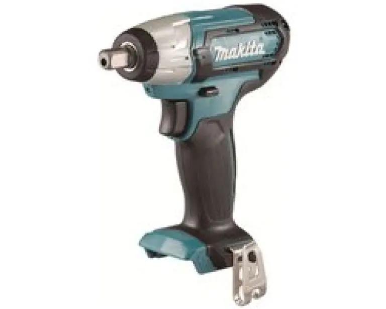 Je ontvangt de Makita TW141 accu-slagmoersleutel inclusief riemclip, geleverd in een doos zonder batterij, oplader of koffer. Ideaal als je al beschikt over een Makita CXT 12V accu en lader.