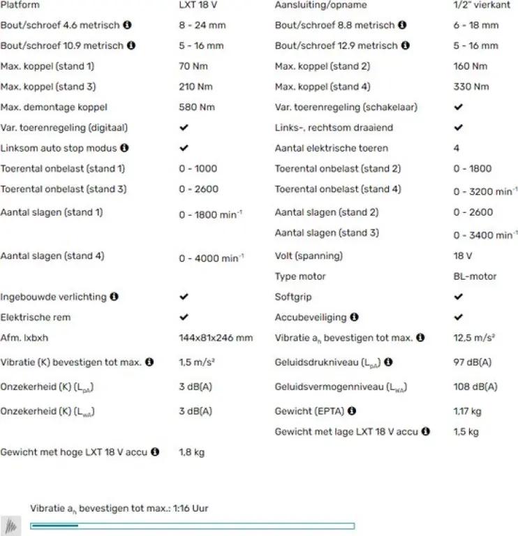 Deze Makita DTW300Z wordt geleverd als losse body, wat betekent dat de accu en oplader niet inbegrepen zijn. Heb je deze nog niet? Dan moet je ze er los bij kopen. De DTW300Z maakt deel uit van een accu platform waarbij dezelfde accu op verschillende apparaten gebruikt kan worden, wat handig en kostenbesparend is.