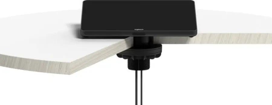 De Logitech tafelbevestiging is geschikt voor tafels met een dikte van 20 tot 50 mm en past in standaard doorvoergaten met een diameter van 51 tot 89 mm. Hierdoor is hij makkelijk te installeren op de meeste vergadertafels zonder extra aanpassingen.
