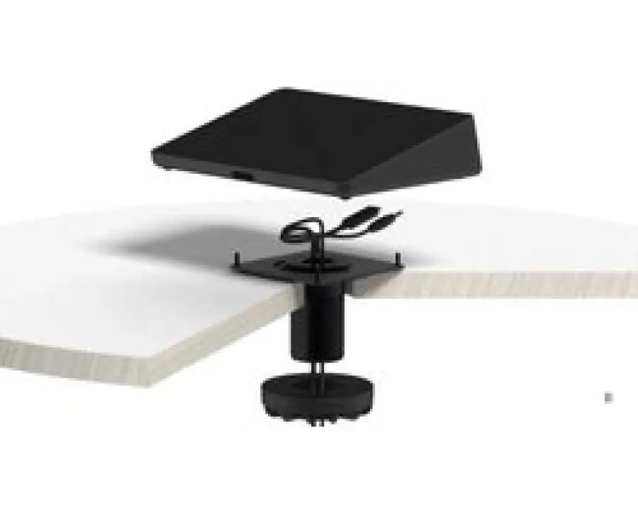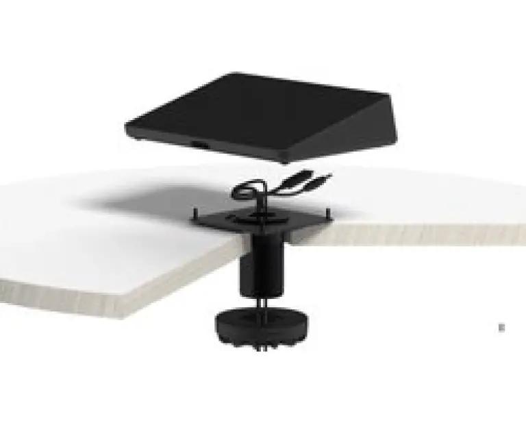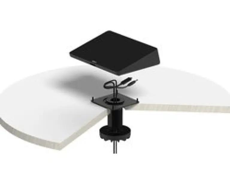 Deze tafelbevestiging zorgt voor een nette en opgeruimde vergadertafel. De kabels worden via het doorvoergat geleid, waardoor je nooit meer last hebt van rommelige kabels. Het subtiele ontwerp behoudt de strakke uitstraling van je touchcontroller en ondersteunt een vaste schermhoek van 14°, wat zorgt voor optimale zichtbaarheid en bediening.