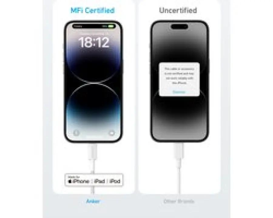 De Anker Lightning-kabel is MFi-gecertificeerd, wat betekent dat hij speciaal is ontworpen om perfect samen te werken met elk Lightning-apparaat van Apple. Geen verbindingsproblemen meer, gewoon plug-and-play.