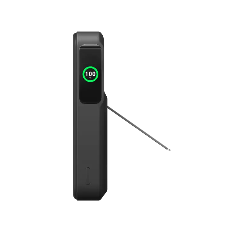 Het ingebouwde slimme display houdt je continu op de hoogte van het accupercentage of de resterende tijd tot een volle batterij. Zo weet je precies wanneer je apparaat klaar is. Daarnaast heeft de powerbank een ingebouwde standaard, waardoor je je telefoon handsfree kunt neerzetten om video’s te kijken of videobellen zonder dat je hem vast hoeft te houden.