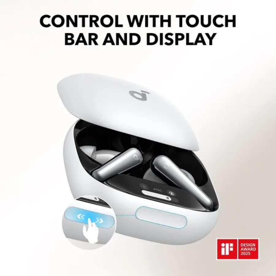 Bedien de oordopjes eenvoudig met de touch bar en het display. Met een simpele veeg kun je het niveau van de ruisonderdrukking aanpassen, zonder gedoe of ingewikkelde menu's.