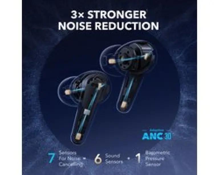De Anker Liberty 4 Pro oordopjes bieden een indrukwekkende ruisonderdrukking dankzij maar liefst 7 sensoren, waaronder 6 geluidssensoren en 1 barometrische druksensor. Deze combinatie vangt lawaai vanuit elke hoek op, waardoor je kunt genieten van een ruisonderdrukking die drie keer sterker is dan bij eerdere modellen.