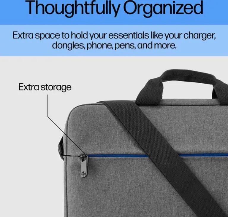 Jouw laptop past perfect in het gevoerde hoofdvak, dat speciaal ontworpen is voor een 15.6 inch laptop. Daarnaast heeft de HP Prelude meerdere vakken, waaronder een apart sleutelvak, zodat je al je accessoires zoals telefoon, hoofdtelefoon, muis en adapter overzichtelijk en veilig kunt opbergen. De ritssluiting houdt alles netjes afgesloten en beschermd.