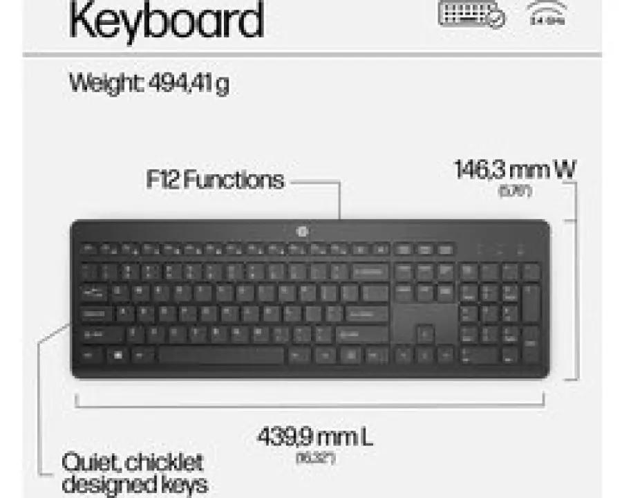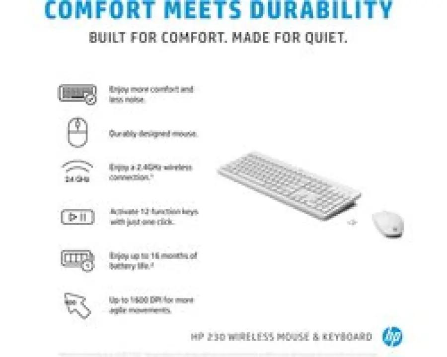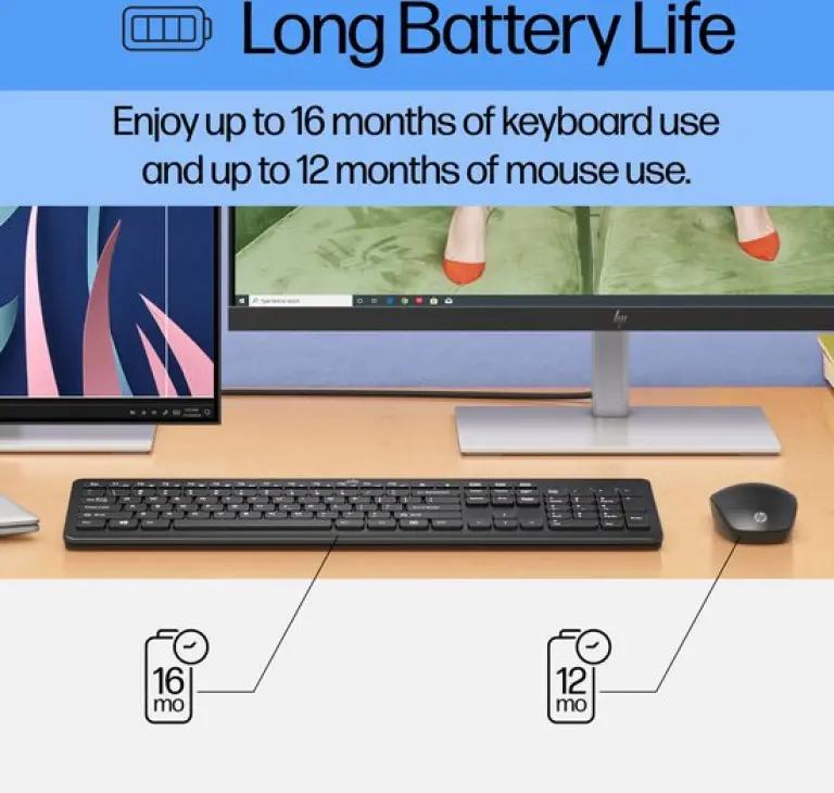De HP 230 draadloze muis- en toetsenbordcombinatie biedt een prettige en rustige werkervaring dankzij het chiclet-toetsenbord. Dit toetsenbord is speciaal ontworpen om comfortabel en nauwkeurig te typen met minder geluid, ideaal voor zowel thuiswerken als op kantoor.