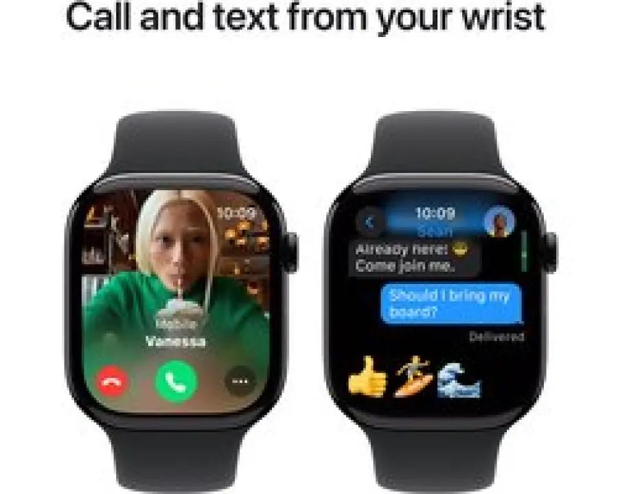 De Apple Watch Series 10 tilt jouw smartwatch-ervaring naar een hoger niveau met een stijlvolle, grotere behuizing van 46 mm. Het vernieuwde OLED-groothoekdisplay biedt een haarscherpe resolutie van 416 x 496 pixels en 40% verbeterde helderheid vanuit elke kijkhoek. Zo lees je jouw meldingen en gezondheidsgegevens moeiteloos af, zelfs in fel zonlicht.