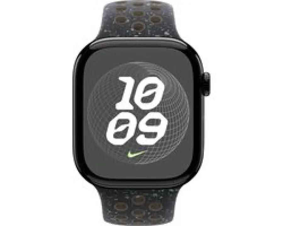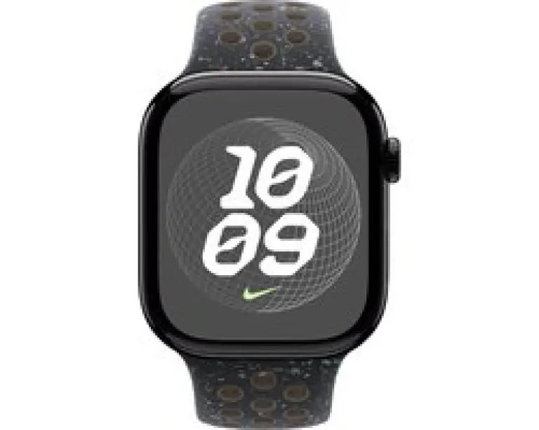 Til je stijl naar een hoger niveau met de Apple 46mm Nike Sport Band in de prachtige kleur Midnight Sky. Deze band heeft een donkere, bijna mysterieuze tint die perfect past bij elke outfit, of je nu aan het werk bent of aan het sporten.