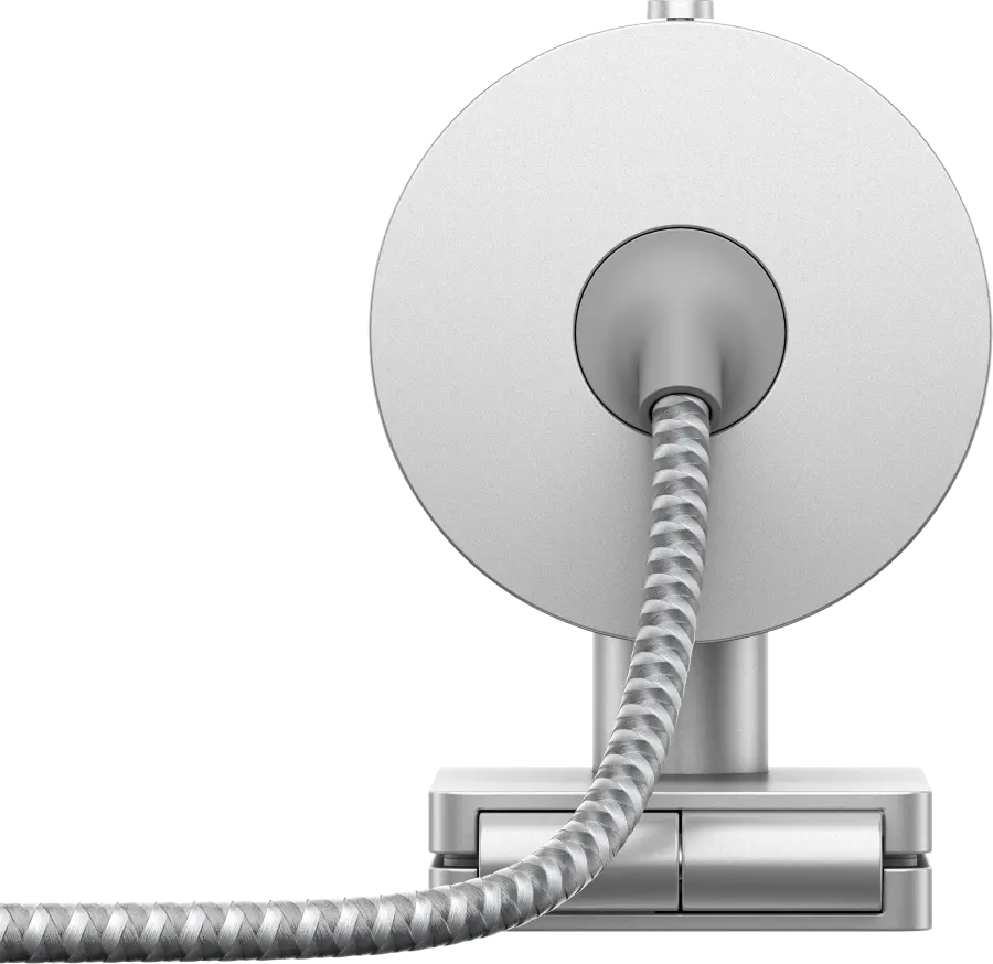 De webcam is compact en licht met een gewicht van 110 gram en heeft een strak zwart-zilver design. Met afmetingen van 67 mm breed, 65,7 mm hoog en 45 mm diep past hij makkelijk op elke werkplek zonder in de weg te zitten.