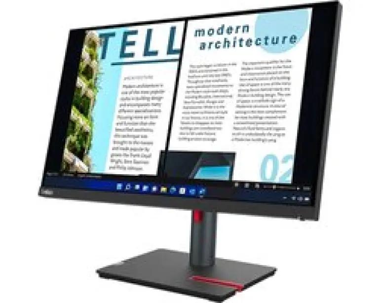 De zwarte Lenovo ThinkVision P24h-30 heeft een strak en modern design dat in elke werkruimte past. Met een gewicht van 5,7 kg en afmetingen van 53,95 x 50,38 x 19,97 cm (B x H x D) inclusief standaard, is hij stevig en toch compact. De monitor is VESA 100 x 100 mm compatibel, zodat je hem ook aan de muur kunt bevestigen (wandhouder optioneel).