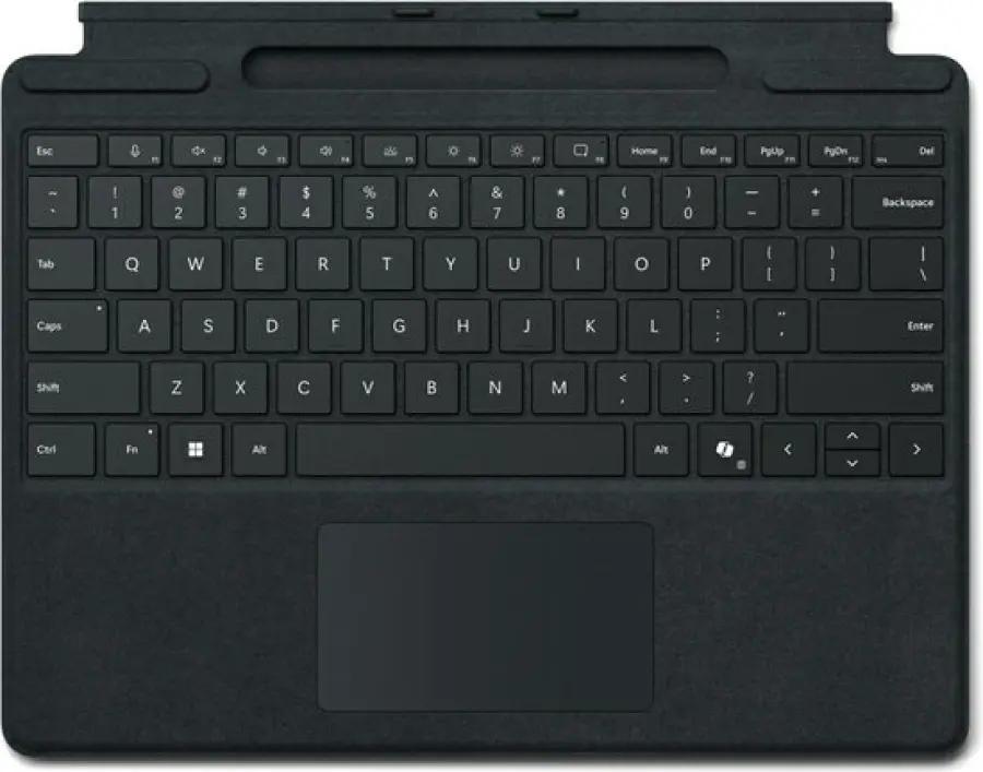 Dit toetsenbord is geschikt voor diverse Microsoft Surface Pro modellen, waaronder de Surface Pro 8, 9 en 10 for Business, evenals de Surface Pro X for Business. De voeding wordt geleverd via een USB-docking die aangesloten wordt op de Microsoft Cover port, wat zorgt voor een stabiele verbinding en stroomvoorziening. Het toetsenbord is uitneembaar en bedraad, wat betrouwbaarheid en een directe respons garandeert.