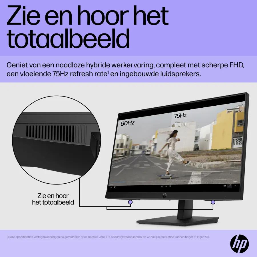 De HP P22h G5 heeft ingebouwde stereoluidsprekers voor helder geluid zonder extra apparaten. Via de HDMI- en DisplayPort-aansluitingen sluit je eenvoudig je computer of andere apparaten aan. De monitor ondersteunt VESA-montage voor flexibele plaatsing. Bovendien zorgt de knippervrije technologie voor een comfortabele kijkervaring zonder vermoeide ogen.