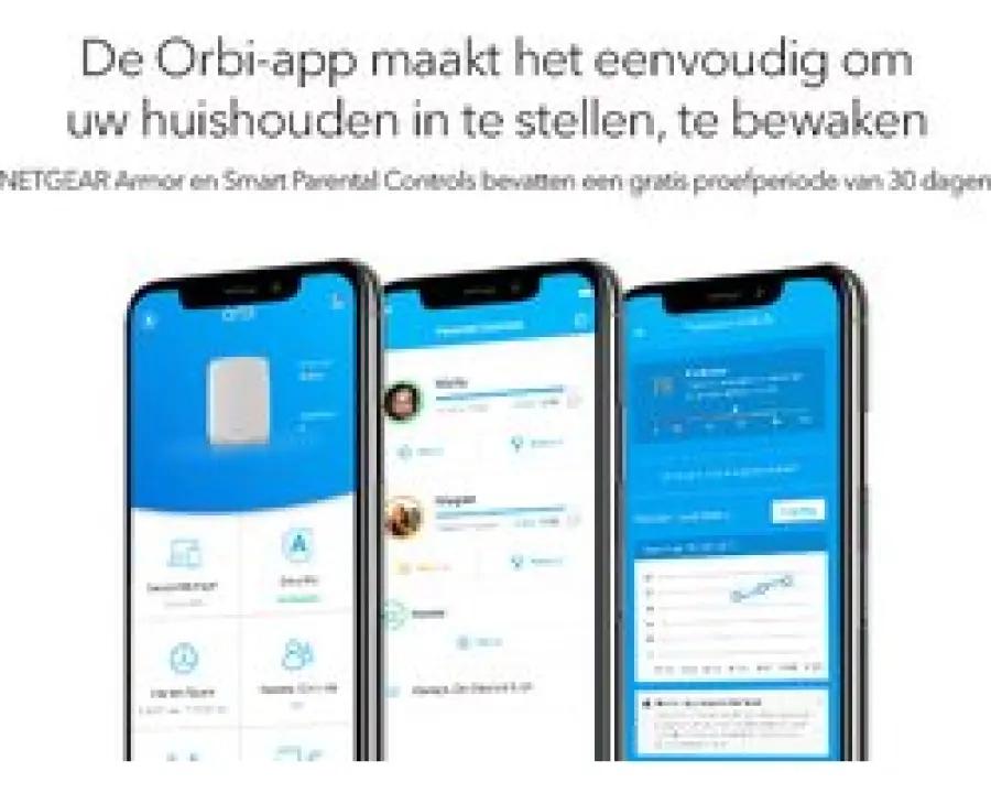 Het installeren en beheren van je netwerk is een fluitje van een cent dankzij de gebruiksvriendelijke Orbi app. Hiermee heb je ook handige functies zoals ouderlijk toezicht, gastnetwerk en Quality of Service (QoS) binnen handbereik. Bovendien beschermt de ingebouwde Netgear Armor beveiligingssuite je netwerk tegen online bedreigingen, zodat je altijd veilig online bent. De Orbi RBK762S is bovendien compatibel met Amazon Alexa en Google Assistant, waardoor je je wifi eenvoudig met je stem kunt bedienen.