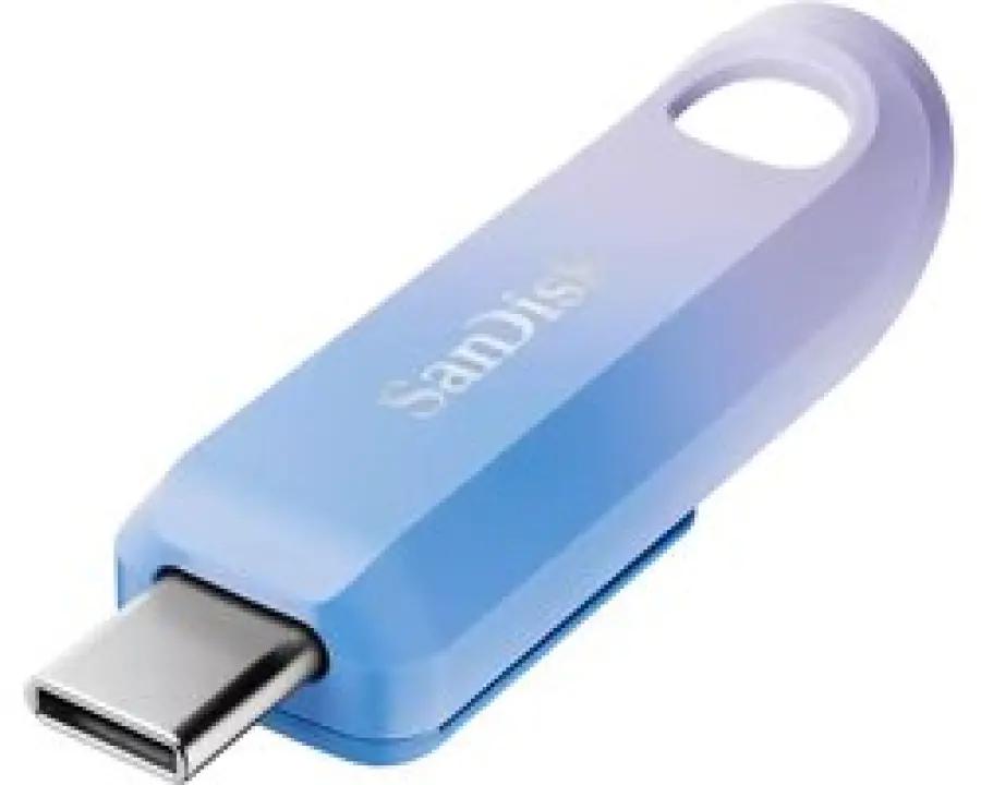 De SanDisk Creator USB-C heeft een slank, modern ontwerp in een frisse blauwe en paarse kleur (Lilac Purple) die perfect past bij je lifestyle en moderne apparaten.