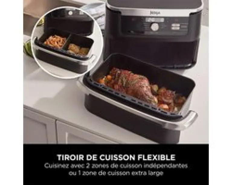 Ontdek de Ninja AF500EU FlexDrawer Airfryer, de perfecte aanvulling op elke moderne keuken die streeft naar zowel functionaliteit als stijl. Deze geavanceerde airfryer is ontworpen om moeiteloos aan al je culinaire behoeften te voldoen, of je nu een groot gezin te voeden hebt of een liefhebber bent van uitgebreide maaltijden.