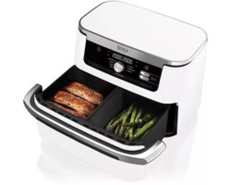 De Ninja AF500EUWH FlexDrawer Airfryer is een echte krachtpatser in de keuken met een royale inhoud van maar liefst 10,4 liter. Dankzij de MegaZone kun je grote maaltijden bereiden voor het hele gezin of juist twee verschillende gerechten tegelijk klaarmaken dankzij de unieke Dual Zone technologie. Deze dubbele heteluchtfriteuse heeft twee aparte kookzones die je met de handige verdeler kunt scheiden, zodat je flexibel en efficiënt kunt koken.