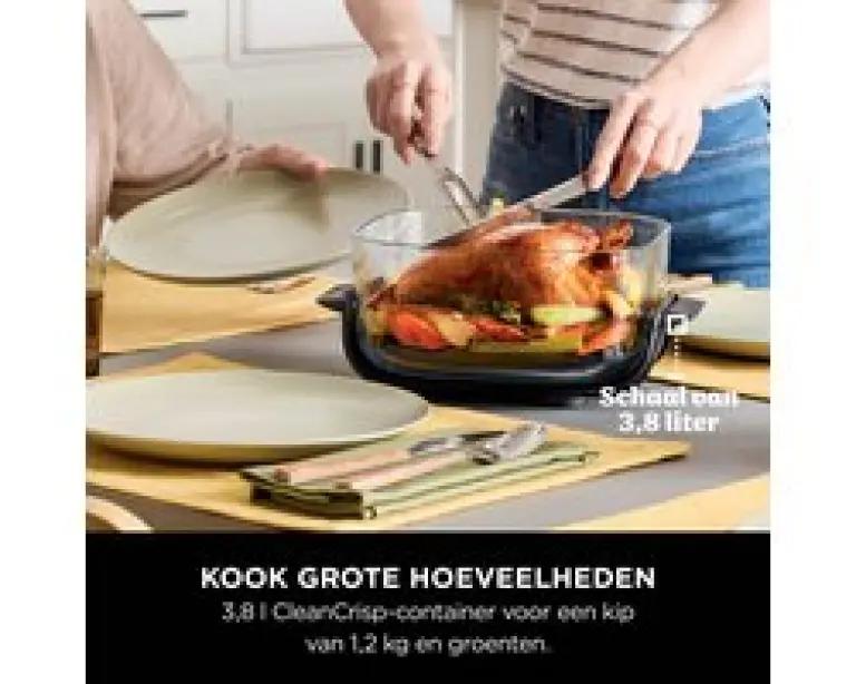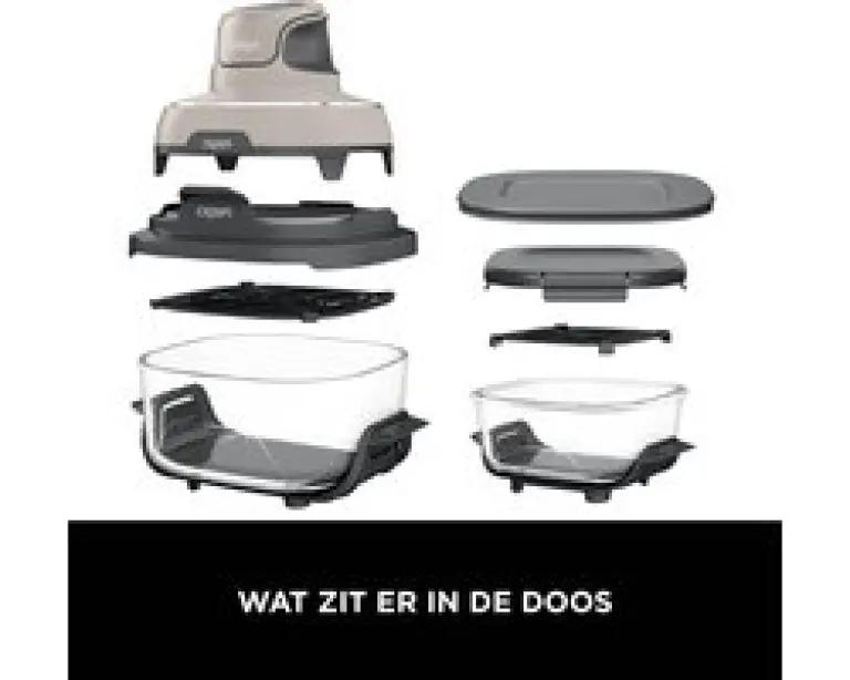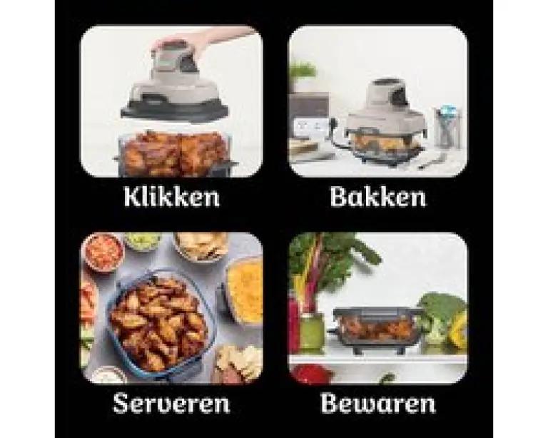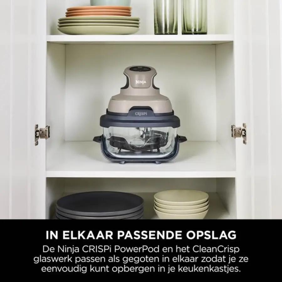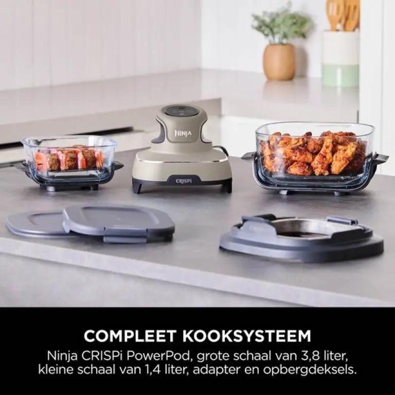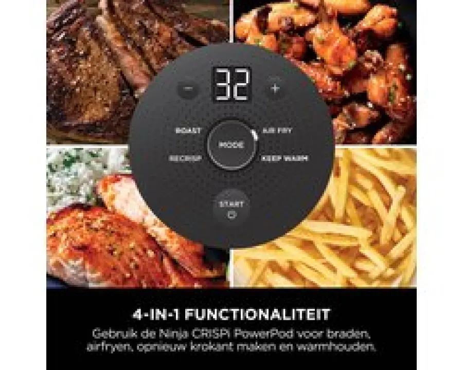 | Aanvullende functies | Ninja CRISPI 4-in-1 glazen kooksysteem: Roast (Braden), Air Fry (Airfryen), Recrisp (Knapperig maken), Keep Warm (Warmhouden) |