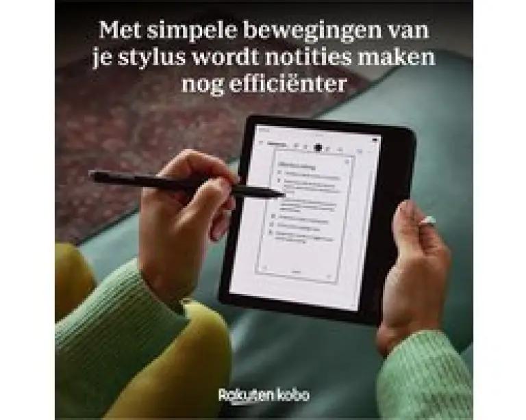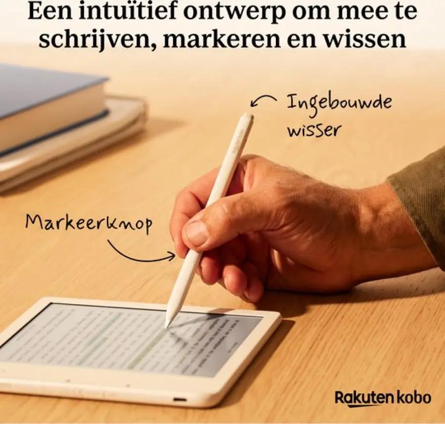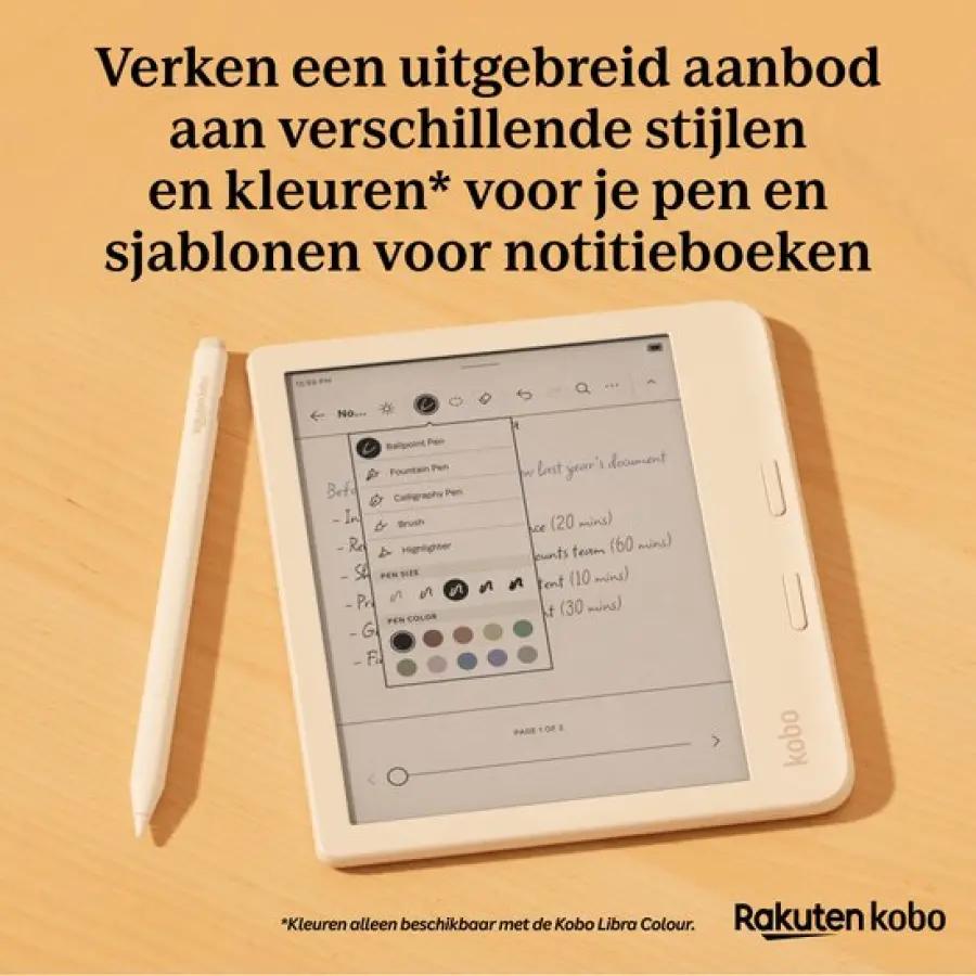 Voor nog meer gebruiksgemak kun je de stylus magnetisch bevestigen aan de Kobo Libra Colour (apart verkrijgbaar). Ook is er een speciale stylushoes beschikbaar om je pen veilig op te bergen en mee te nemen, verkrijgbaar in Zandbeige en Zwart.