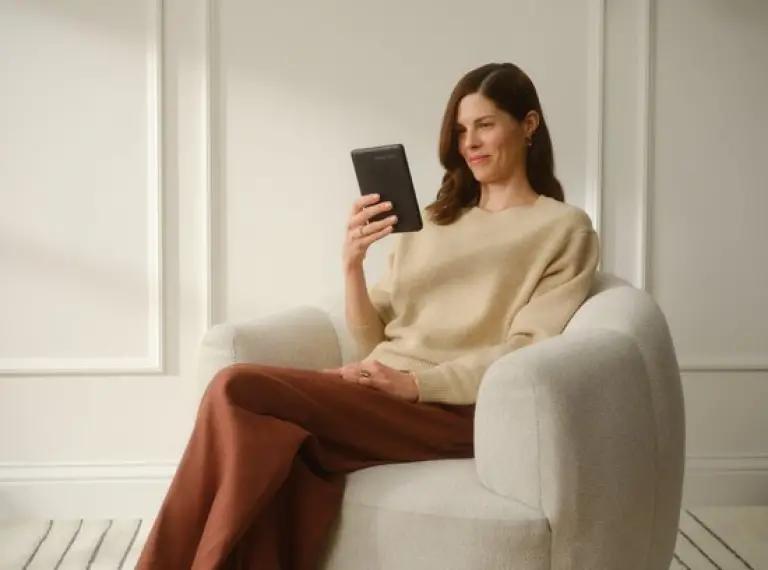 Pas de helderheid en kleurtemperatuur aan met de ComfortLight PRO verlichting of schakel over naar de donkere modus voor een nog aangenamere leeservaring in het donker. De batterij gaat tot wel 26 uur mee, zodat je lang kunt blijven lezen zonder op te laden.