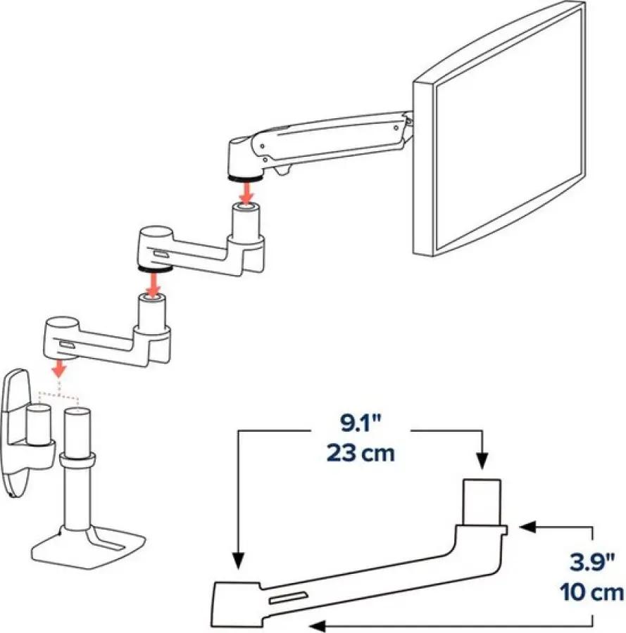 De Ergotron LX Extension is een slimme toevoeging voor iedereen die zijn werkplek nog ergonomischer wil maken. Dit verlengstuk vergroot de reikwijdte van je bestaande LX-arm met maar liefst 23 cm, waardoor je jouw monitor of laptop nog makkelijker en flexibeler kunt positioneren. Of je nu extra ruimte nodig hebt of simpelweg je scherm dichterbij wilt halen, deze extension maakt het mogelijk.
