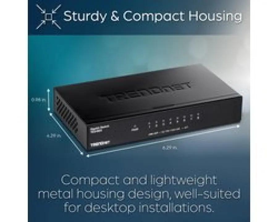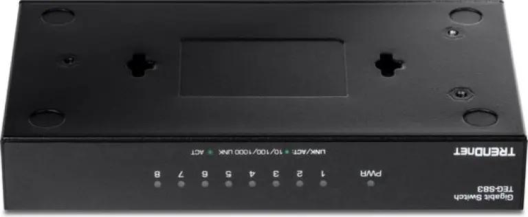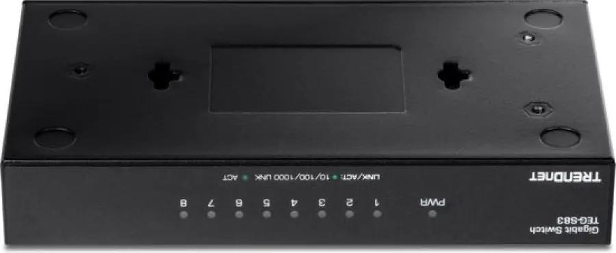 De TrendNet TEG-S83 is extra stil dankzij het ventilatorloze ontwerp. Geen irritant geluid meer tijdens het werken of gamen. De stevige metalen behuizing zorgt voor een duurzame en robuuste switch die je gemakkelijk op je bureau kunt zetten of aan de wand kunt monteren. De LED-indicatielampjes geven duidelijk aan welke poorten actief zijn, zodat je altijd weet wat er speelt in je netwerk.