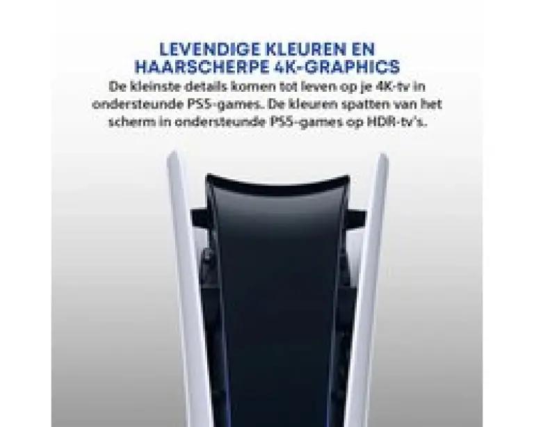 De Sony PS5 Slim Digital Edition brengt een nieuwe dimensie in jouw game-ervaring. Dankzij het slanke ontwerp past deze krachtige console perfect in elke kamer. Je geniet van razendsnelle laadtijden dankzij de ultrasnelle SSD van 825GB, zodat je vrijwel direct in je favoriete games duikt. Let op: dit model heeft geen disc-speler, waardoor je volledig op digitale games bent aangewezen. De verticale standaard wordt apart verkocht.
