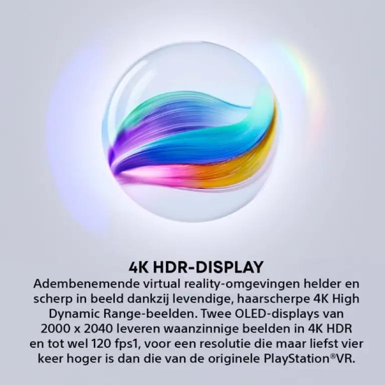 | Verpakkingsinhoud | VR-headset PlayStation | VR2 Sense™-controller (L)/(R) met polsriempjes | USB-kabel (voor het koppelen en opladen van de controllers) Stereohoofdtelefoon | Drie paar oordopjes | Documentatie |