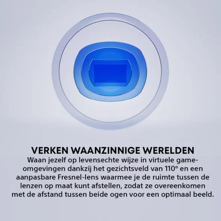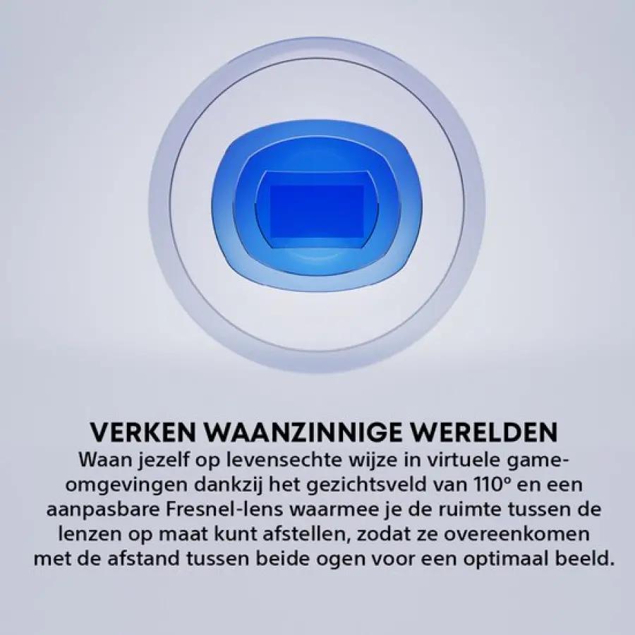 De headset is voorzien van een comfortabele hoofdband en zachte oogkussens, waardoor je urenlang kunt spelen zonder ongemak. Dankzij het geïntegreerde geluidssysteem met ingebouwde speakers en 3D-audio hoor je elk geluid haarscherp en realistisch. De headset is geschikt voor brildragers en wordt aangesloten via een enkele USB-C-kabel, wat installatie en gebruik heel eenvoudig maakt.